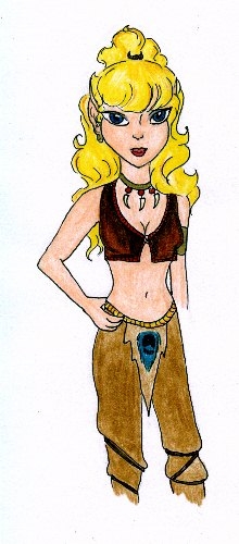 My initial "these will just be pictures" assertion didn't last long, as you can all plainly see (snarf!). But how was I to know that Cutter as a Girl would edge out Cutter as a Wuss? I'm a little sad sometimes to have lost that chara: he was going to be called Weaver, which struck me as the furthest from "Cutter" one could. While cutting separates, weaving draws together. Get it? Augh, bad attempts at symbolism. But no, Cutter as a Girl was the one that stuck, and before I knew it, Swift was staring back at me on the page. I didn't know what to make of her, at first. I darkened her hair from Cutter-blond to golden-blond, because I was afraid of making her too fair-haired. I wondered whether it might be sacrilegious to actually have her wearing Rayek's collar. Would Rayek fall in love with a Cutter - even a female Cutter?